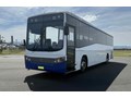 7 speed manual synchro gearbox, full air suspension, power steering, full air brakes, maxi brake, retarder, tubeless wheels, very good tyres, 100 kmh speed limited, Autobus brand 13.6 metre coach body, 54 fabric recliner coach seats, lap/sash seatbelts, single door, Karrier airconditioning, wheelchair lifter, sunken aisle, tinted/bonded windows, underfloor thru bins, electric bin doors, alloy bullbar, driving lights, DVD/CD/radio, offside rear toilet, very tidy condition.
