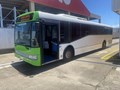 Volvo 6 cylinder 340 horsepower turbo diesel engine, rear mount, ZF automatic transmission, air suspension, power steering, full air brakes, maxi brake, tubeless wheels, Bustech brand 12.5 metre lowfloor bus body, single door, 55 fabric bus seats, fold out wheelchair ramp, airconditioning, flat floor front section, sunken aisle/raised floor rear section, roof hatches, tinted rubber mounted windows, digital desto, ISRI driver's seat, straight body, one owner vehicle.